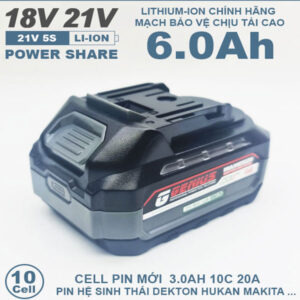 Pin chân phổ thông Makita 18V-21V 6.0Ah 10 cell mạch 80A chống sốc led báo pin 2 bên