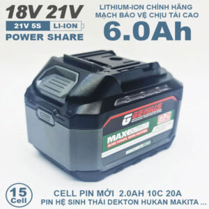 Pin chân phổ thông Makita 18V-21V 6.0Ah 15 cell mạch 80A chống sốc led báo pin 2 bên
